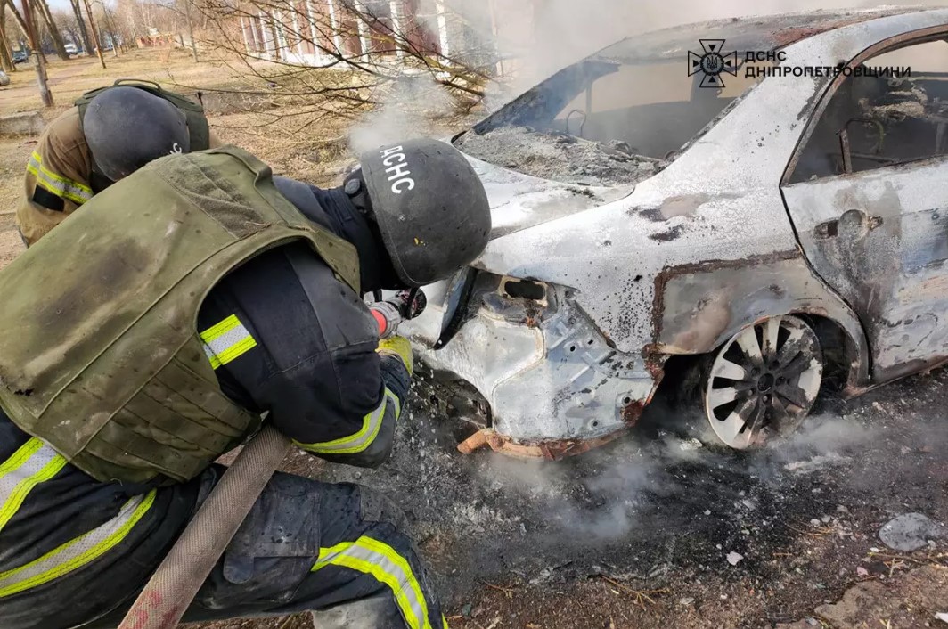наслідок обстрілу по місту Нікополь сталося займання двох легкових автомобілів «Mazda 6» та «Daewoo Lanos».