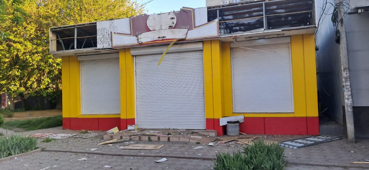Пошкоджені магазини, лабораторія, багатоквартирний будинок, лінія електропередач. Обстеження території триває.